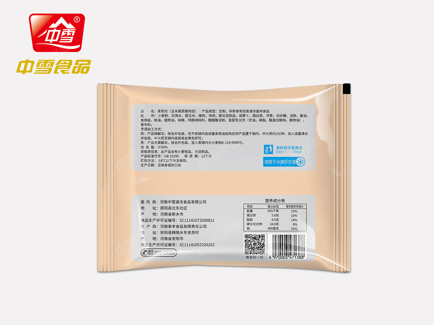 口味:豬肉、菌菇三鮮、芹菜、玉米、香菇、大蔥、韭菜